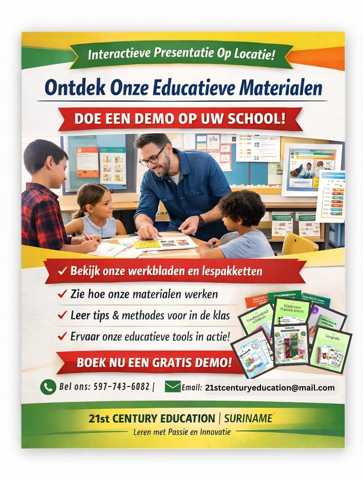 Dit boek heeft opdrachten over kaartkennis, topografie, de verschillende bevolkingsgropen van Suriname, en de DC’s per district. Met dit boek wil ik dat elke Surinamer, onze Surinaamse kinderen, hun land gaan kennen, alle namen van de districten en hun hoofdplaatsen kennen en welke DC welk district bestuurd.